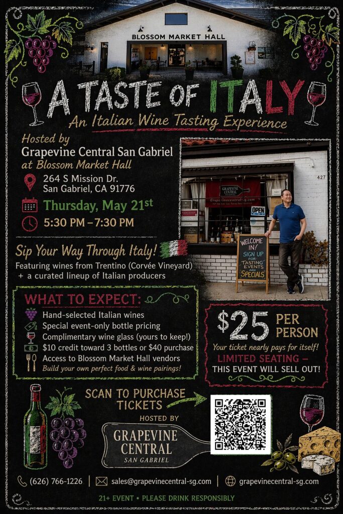 Grapevine Central is hosting a wine tasting at Blossom on Thursday, May 21st from 5:30pm – 7:30pm! Join us for an evening of beautifully crafted organic and biodynamic wines, thoughtfully curated and poured for you to explore at your own pace. Whether you’re discovering something new or deepening your love for natural wines, this tasting is designed to be relaxed, welcoming, and delicious.