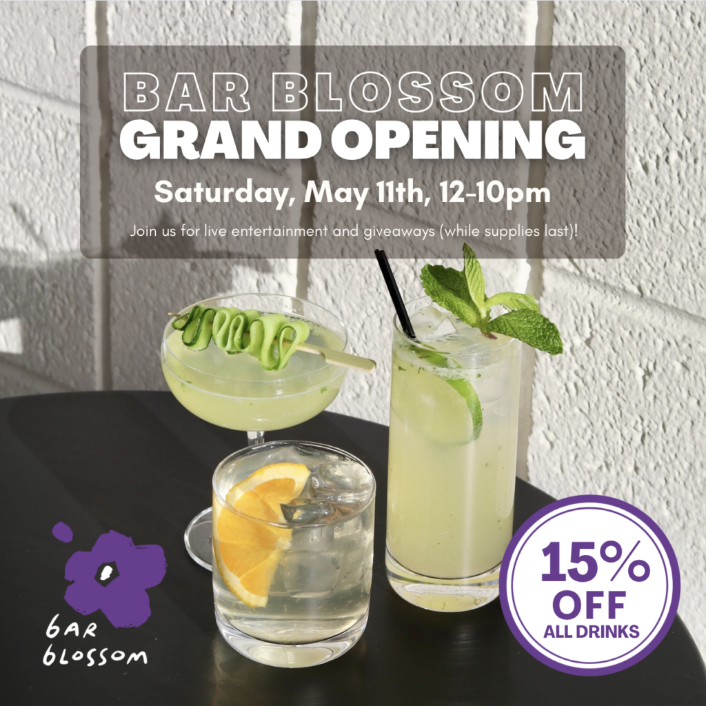 We are so excited to announce the grand opening of Bar Blossom, presented by Blossom Market Hall!