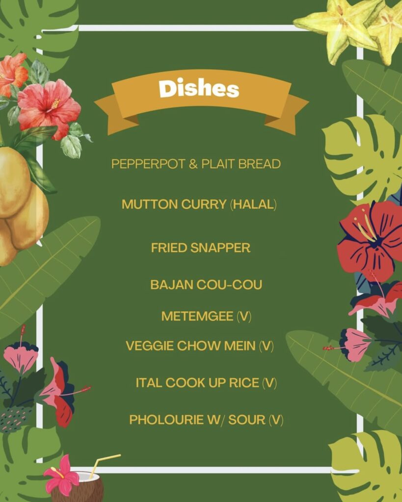 The menu will include a wide selection of traditional Caribbean dishes, snacks, drinks, and desserts, all served buffet style. Try a few or try them all, it’s up to you. There will be a steel pan player in the art gallery for a more relaxing vibe and DJ Killer “B” will be playing on the main stage to keep the party going!
