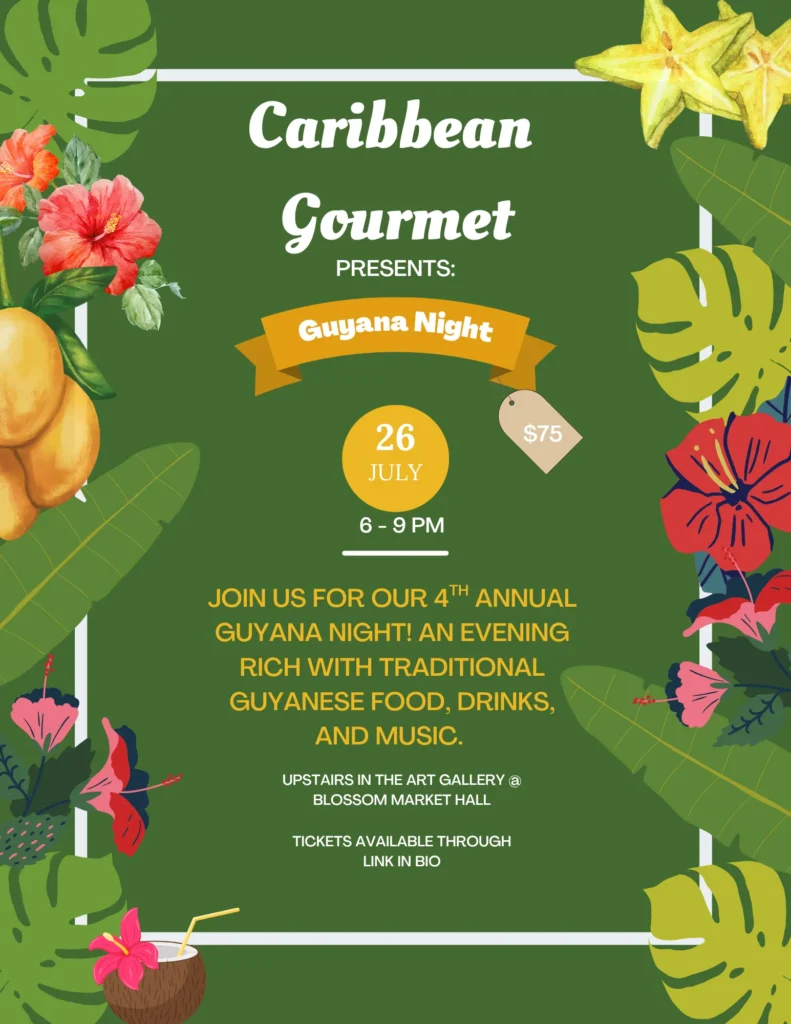 Join Caribbean Gourmet in celebrating their 10th anniversary at Guyana Night on Saturday, July 26th from 6-9pm .