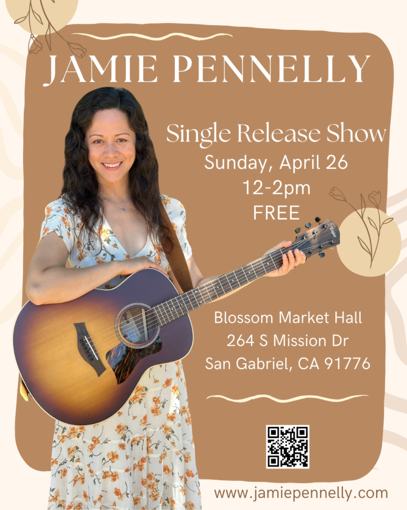 Central coast based singer-songwriter, Jamie Pennelly is performing on Sunday, April 26th from 12-2pm!