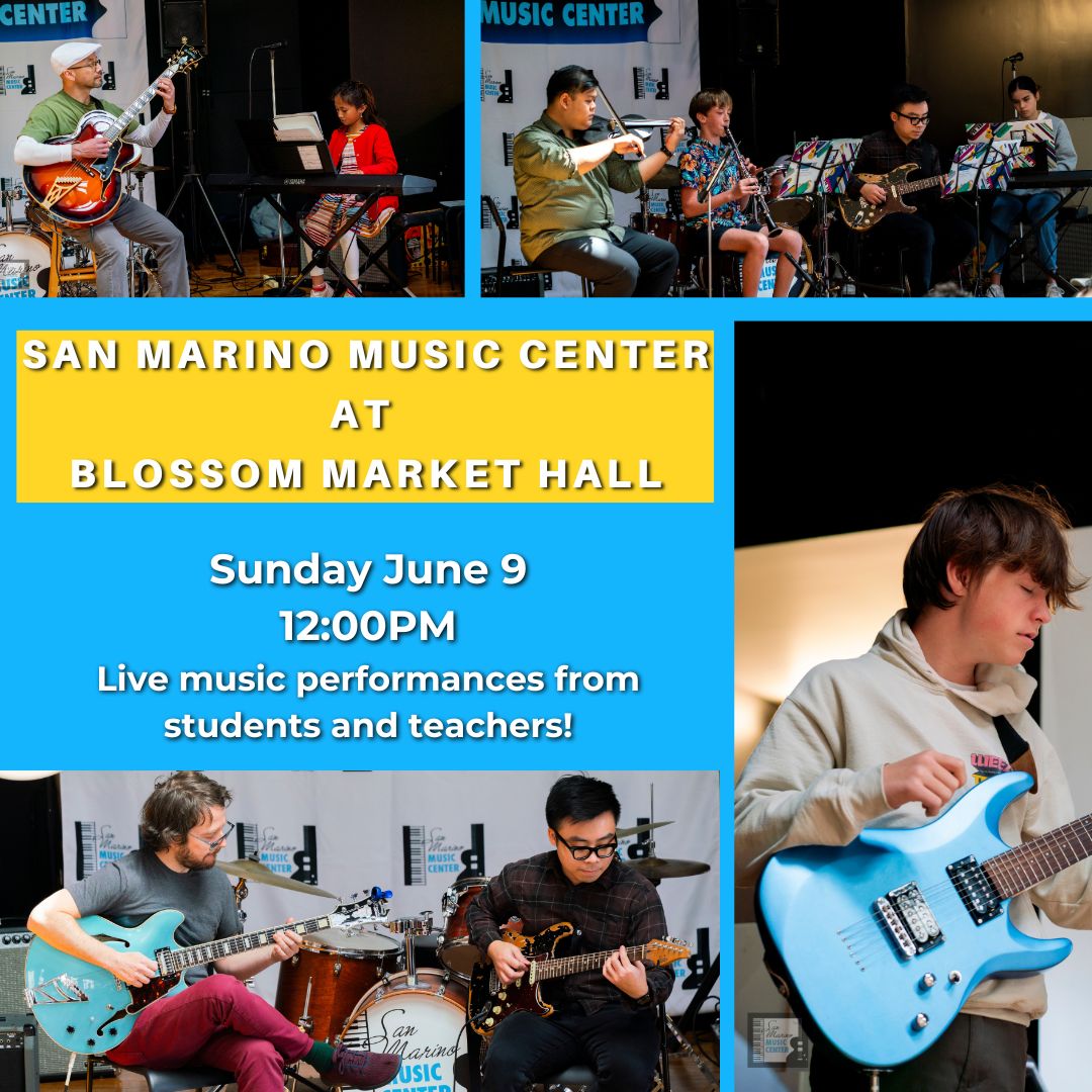 San Marino Music Center is thrilled to return to Blossom Market Hall! Join us for an exciting showcase featuring group performances by their students and teachers. Get ready for a dynamic lineup ranging from rockin’ guitars ? to elegant violins ? ?! They can’t wait to share this wonderful experience of live music and food with everyone!