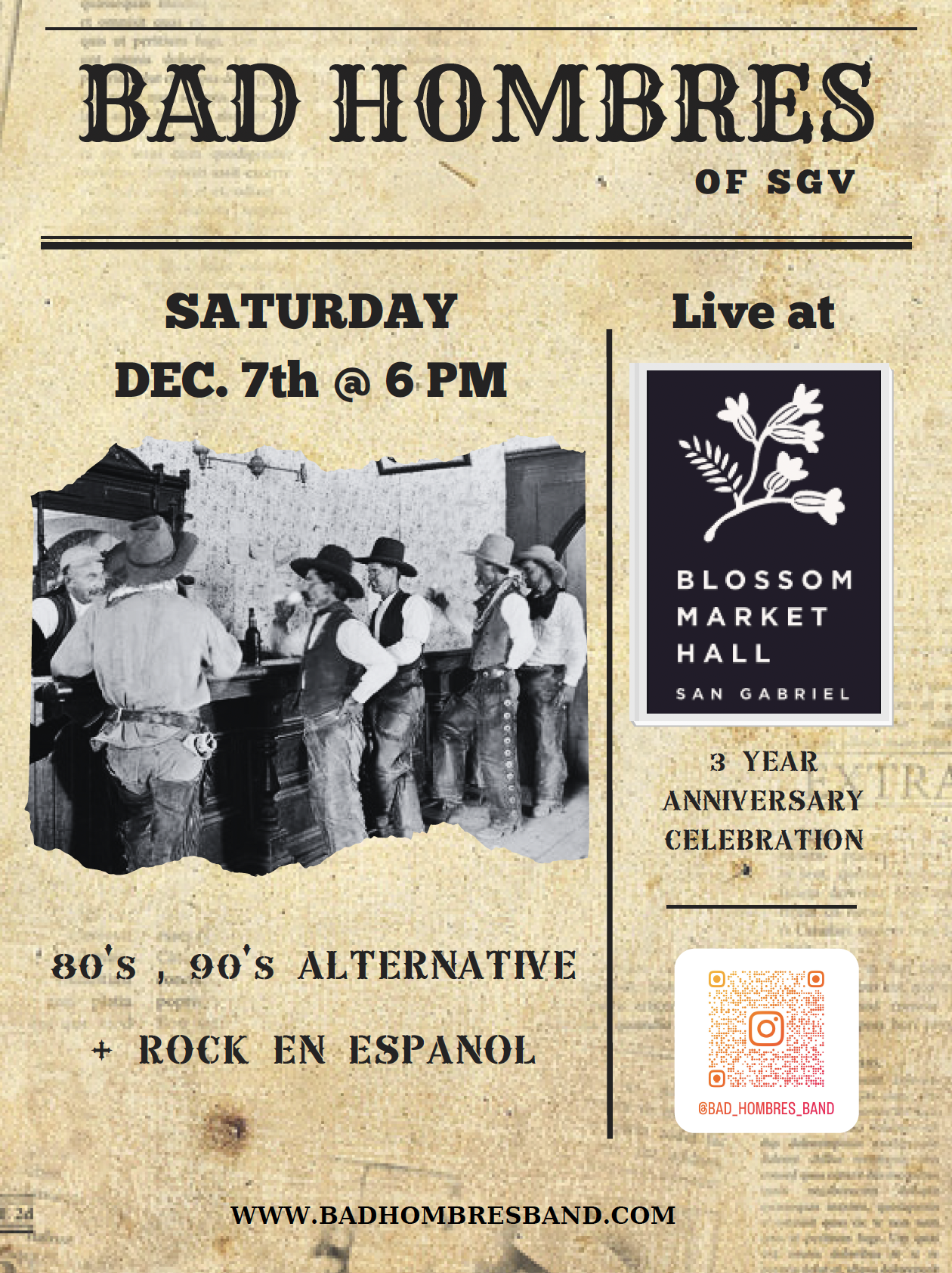 Join Bad Hombres, for a live performance to celebrate Blossom Market Hall’s 3-Year Anniversary!