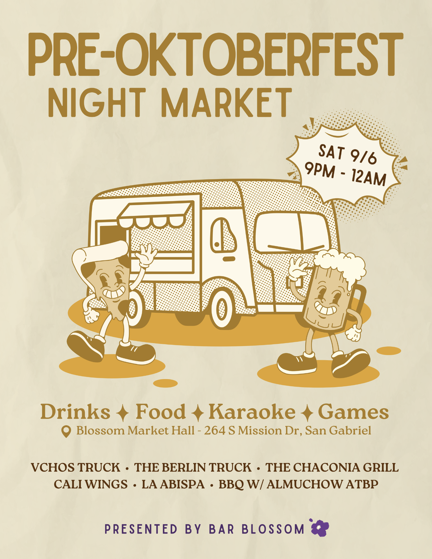 Can’t wait for Oktoberfest? Neither can we! Join us for our Pre-Oktoberfest Night Market on Saturday, September 6th from 9pm-12am!