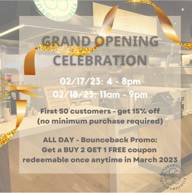 Come join us for the Grand Opening of tensevenrolls.