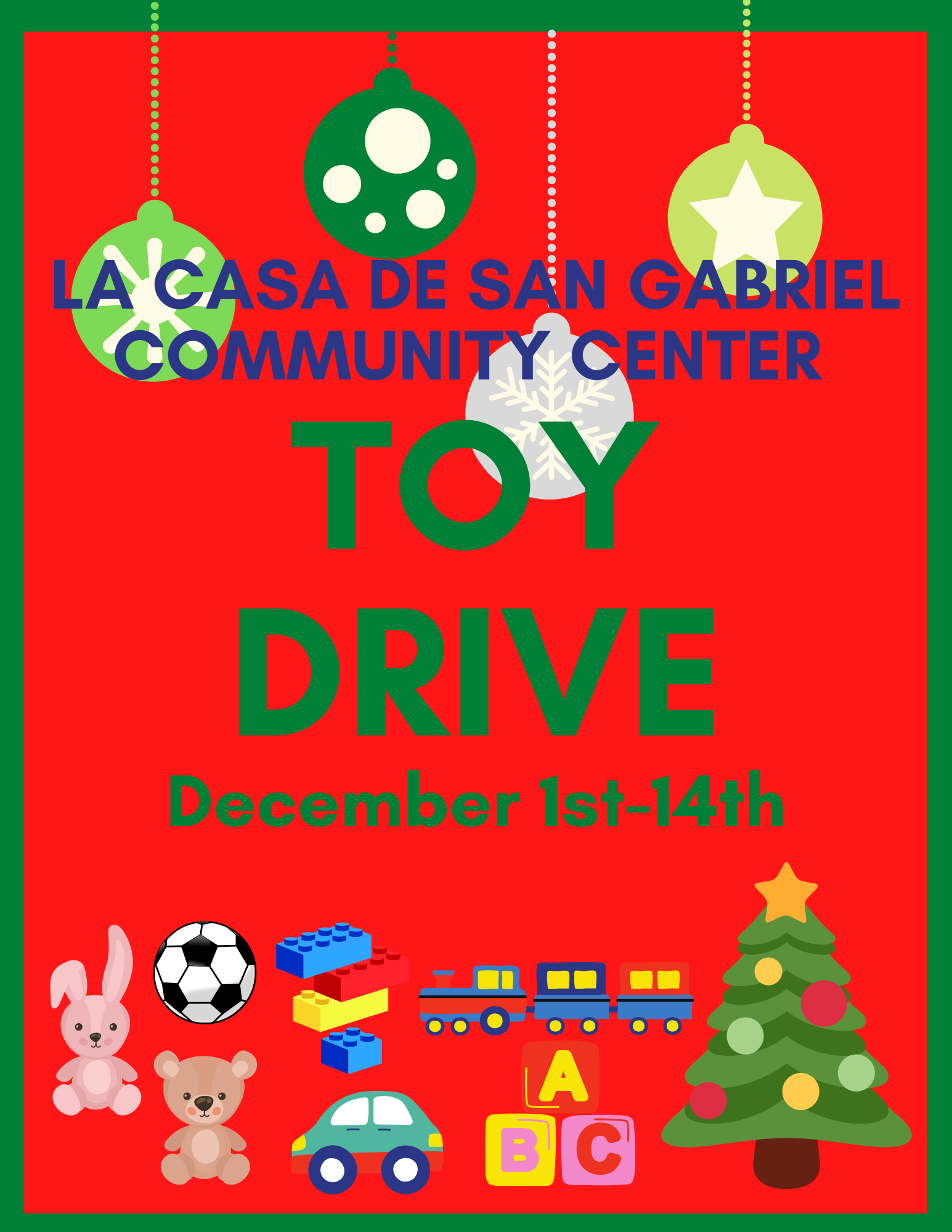 We partnering with La Casa De San Gabriel Community Center for a toy drive. Donations will be accepted until 12/15!