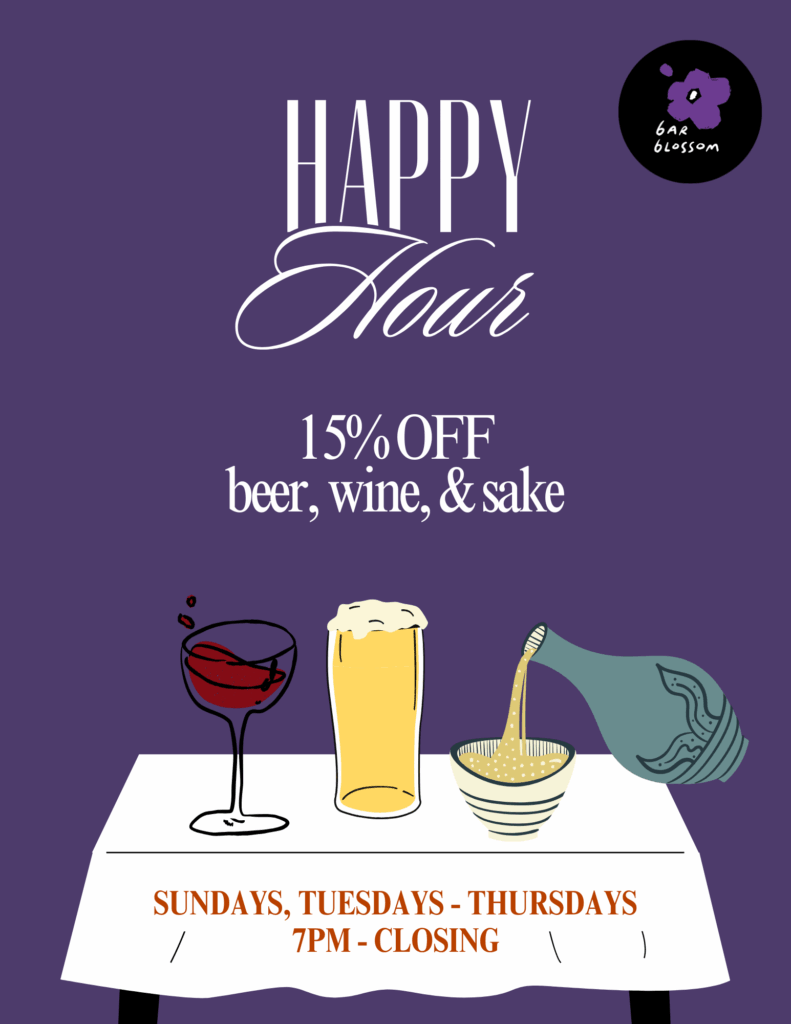 In efforts to create a warm and inclusive space, Bar Blossom will be serving sake and shochu from Japan, wines from Europe, local beer from right here at home, and cocktails made with warmth and care.